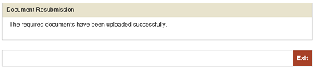 The system will confirm that your documents have been successfully uploaded and the application status will be updated accordingly.